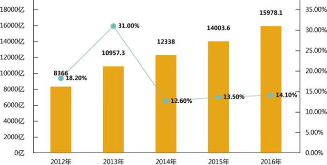 2016年全國家政市場規模為1.6萬億元,年增長14%